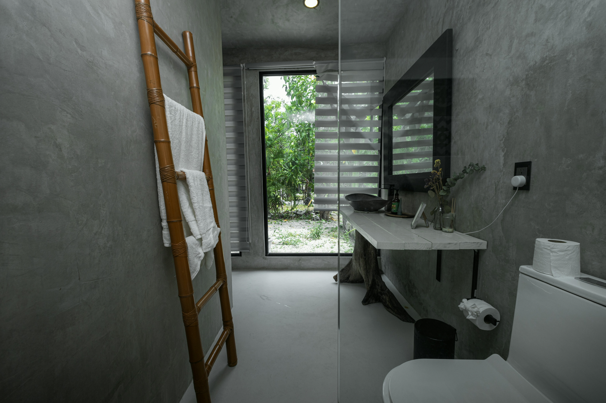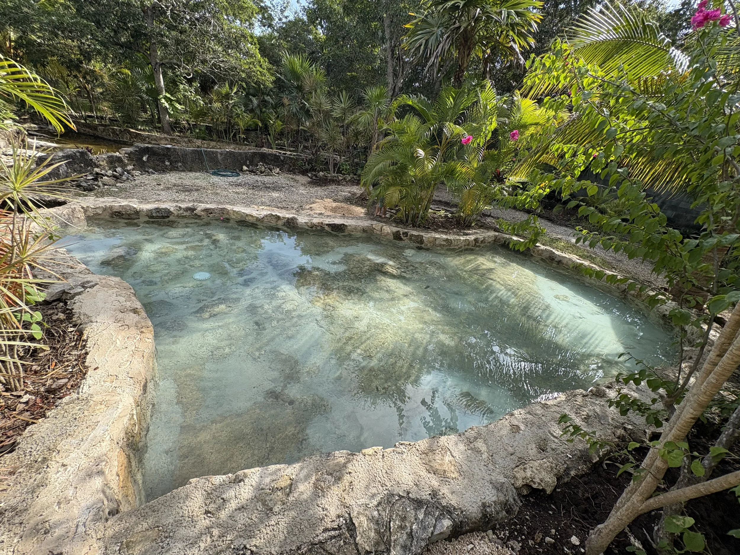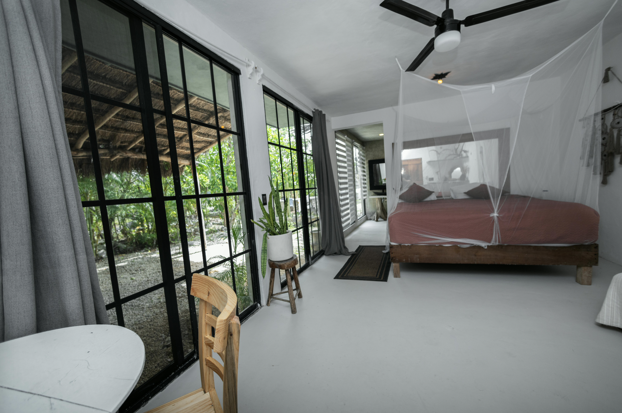 Relax in this spacious and serene space, located on a lush green gated ranch, on the quiet side of Tulum, that has a big jacuzzi and garden outside.