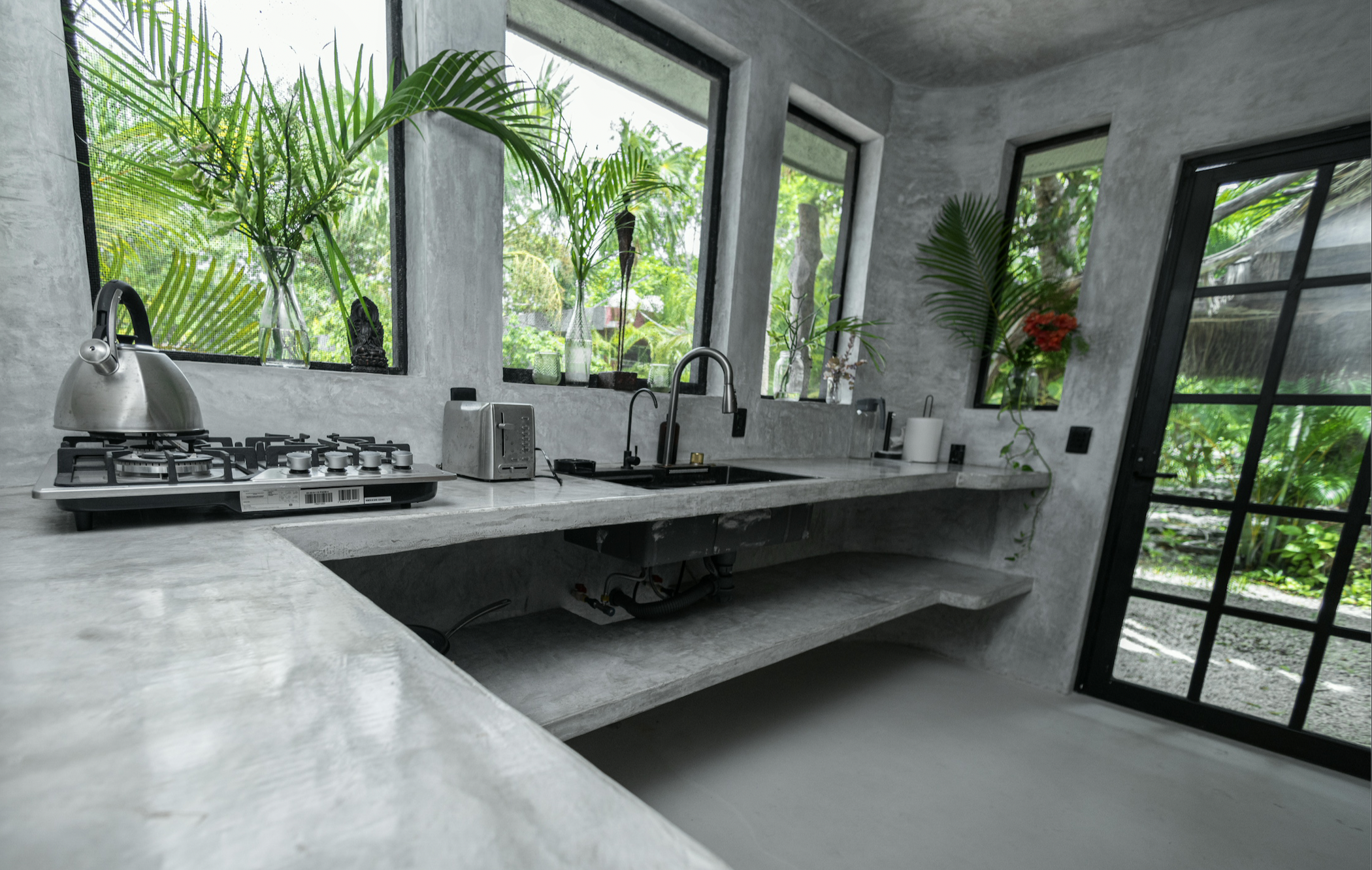 Wake up in light kitchen, surrounded by greenery and large windows. Get a kick-start with your coffee maker, basic cooking essentials, stove, toaster, fridge & freezer a small workspace and/or dining table to begin the day well.